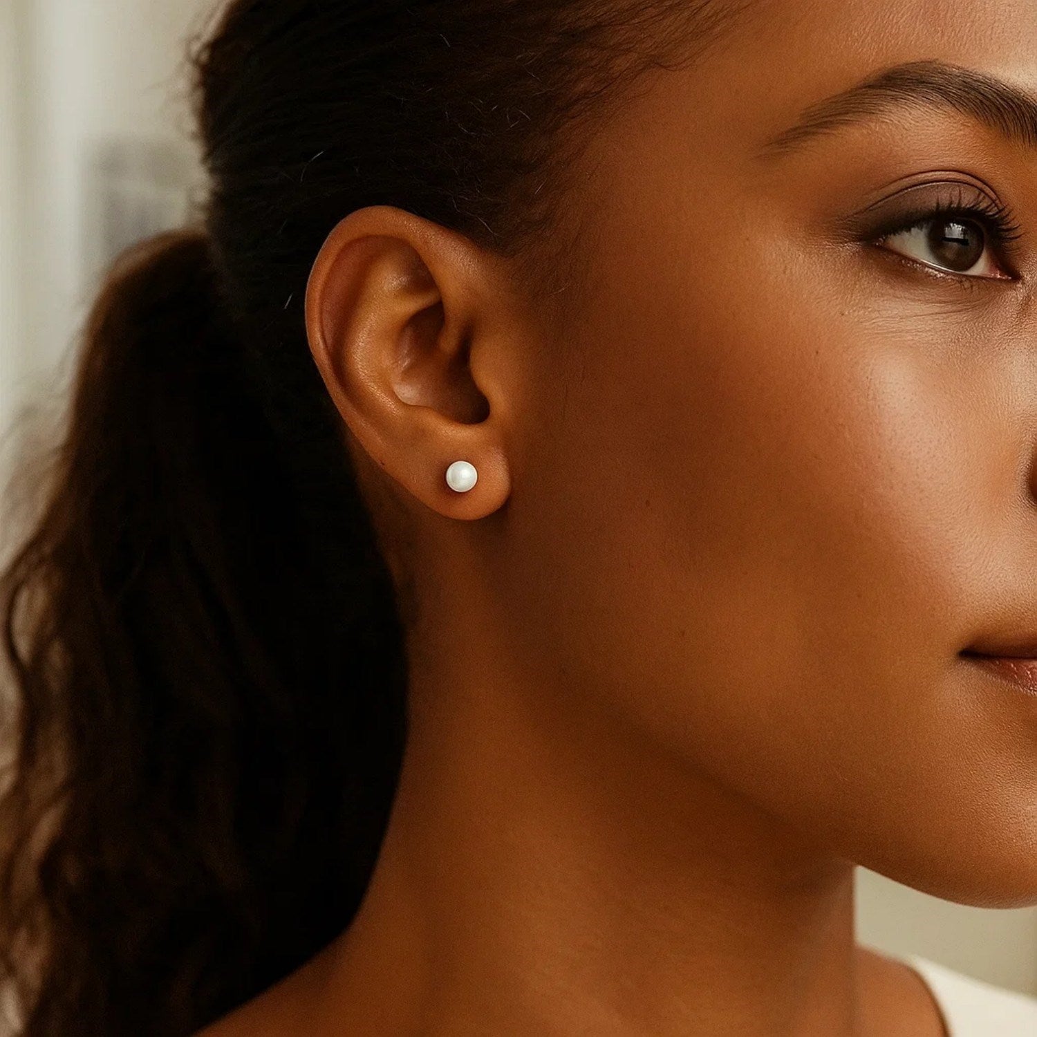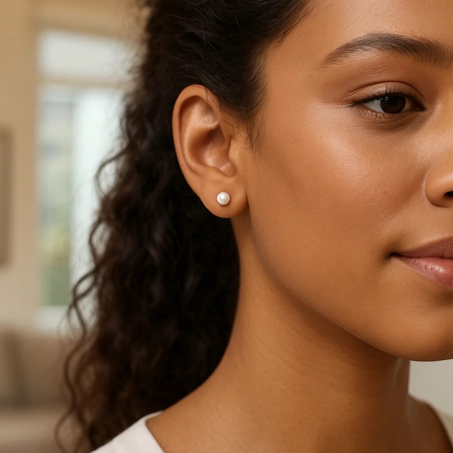 Elegant white freshwater cultured pearl stud earrings set in 14K white gold measuring 4.00 mm. Featuring luminous round pearls with a smooth, natural sheen, these timeless earrings embody classic sophistication, perfect for everyday elegance or formal occasions.